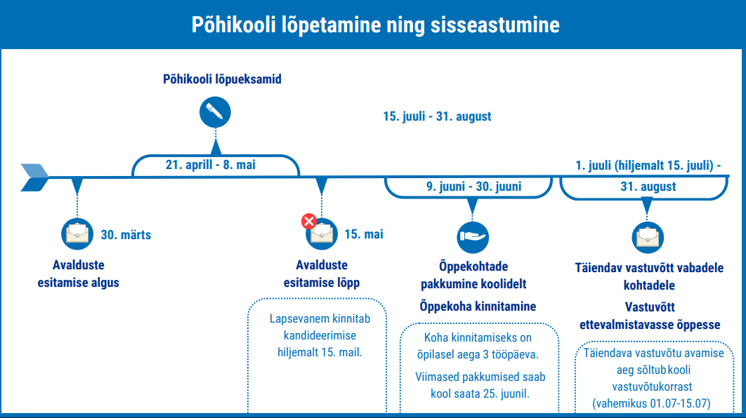 - Põhikooli lõpetajate põhivastuvõtt algas 30. märtsil 2026.