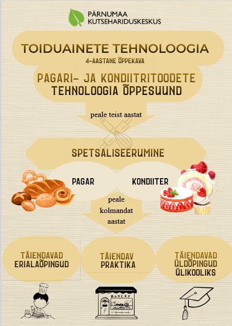 Pagari- ja kondiitritoodete tehnoloogia on praktiline ja loov õppesuund. Õpe sobib õppijale, kellele meeldib pirukate, kringlite, tortide ja maiustuste valmistamine ning kes hindab täpsust, hoolikust ja oma kätega tehtud tööd.