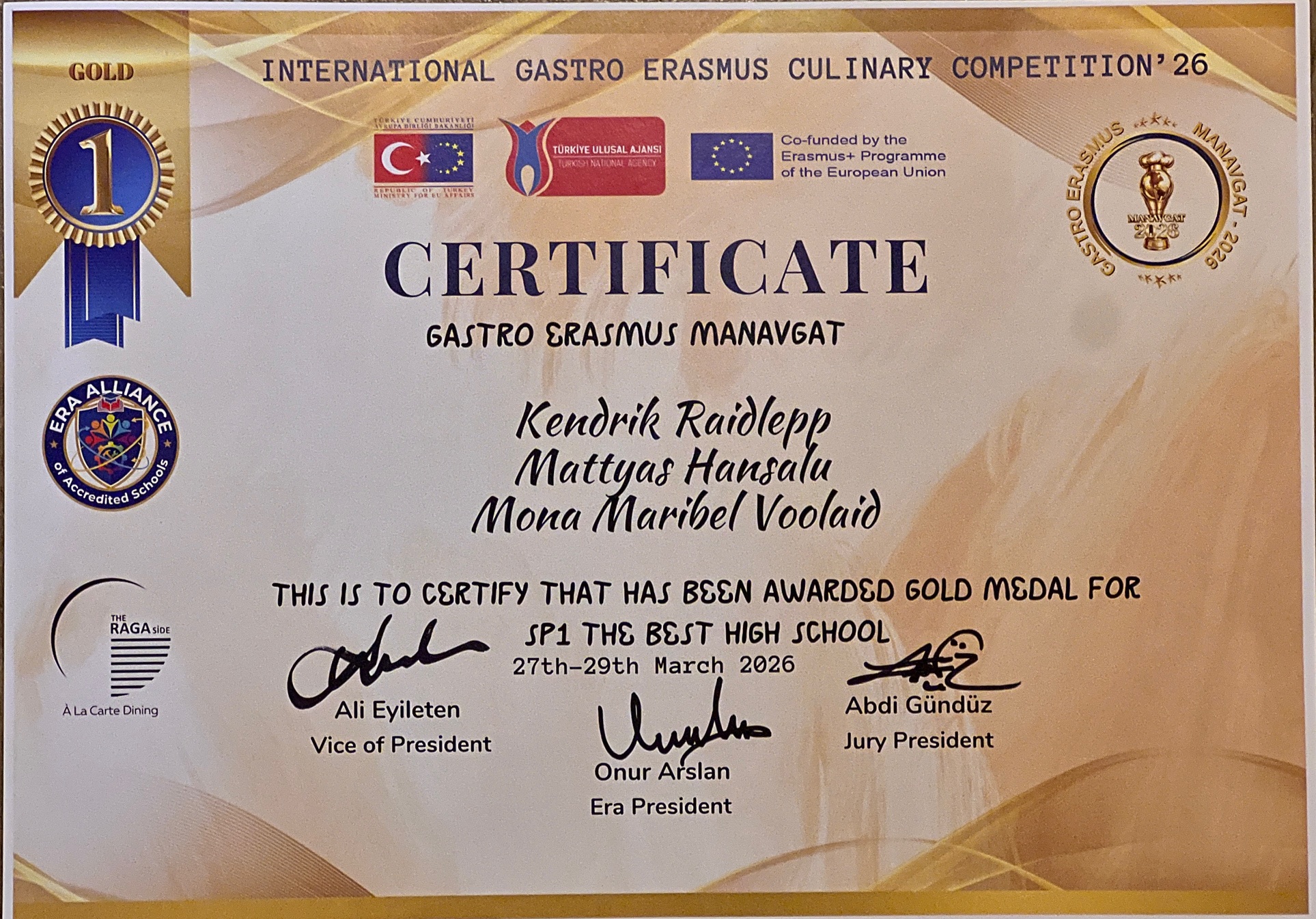 27.–29. märtsil 2026 toimus Türgis Manavgatis kokandusvõistlus, kus osalesid ka meie õpilased ja õpetajad: