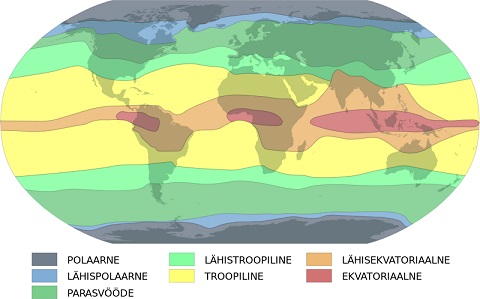 Joonis. Kliimavöötmed (http://et.wikipedia.org/wiki/Kliimav%C3%B6%C3%B6tmed)