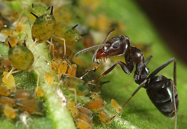 Joonis. Sipelga ja lehetäi vahel on sümbioos (http://www.redbubble.com/people/darrenjan/works/2741083-ant-aphid-symbiosis)