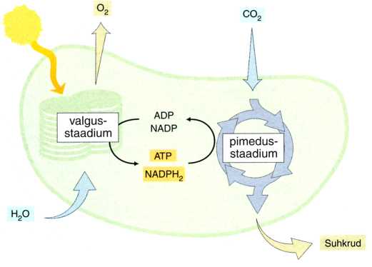 Fotosünteesil eristatakse kahte etappi: valgusstaadiumi ja pimedusstaadiumi.